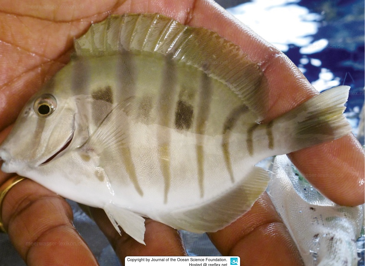 Rowlett, J.H. (2018) A hybrid surgeonfish, Acanthurus triostegus x A. polyzona , from Mauritius.