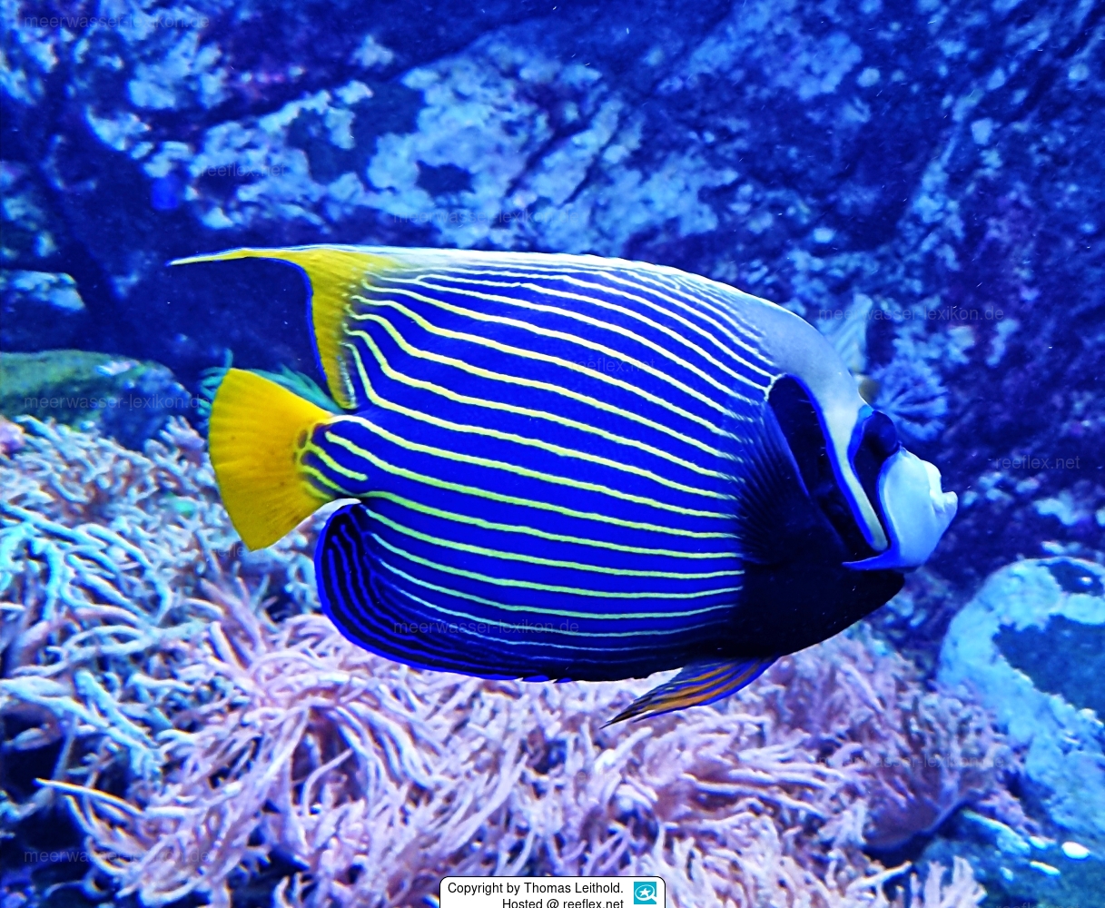 zu 1 km² als sein Reich nach fressbarem absucht, dementsprechend oft kommt er zu ein und den selben Niedertier in einem Aquarium. Dieses Verhalten zeigen übrigens alle Großkaiserfische und von daher sollte man von der Pflege in einem richtigen Riff-Korallen-Becken absehen so schön dieses Tier auch ist. Diese Tiere werden aufgrund ihres ständigen Hungers sehr zutraulich aber sie sind nicht zahm sonder gierig, das sollte man nie vergessen. Sie haben selbst vor der Hand ihres Pflegers keine Angst und sind in der Lage die Hand Ihres Pfleger auch durch Ihre Kiemendeckel-Fortsätze empfindlich zu verletzten wenn sie sich bedroht oder in die Enge getrieben fühlen. Ferner sollte man sich vor der Anschaffung noch über weitere Details im Klaren sein: Der Imperator wir ausgewachsen bis