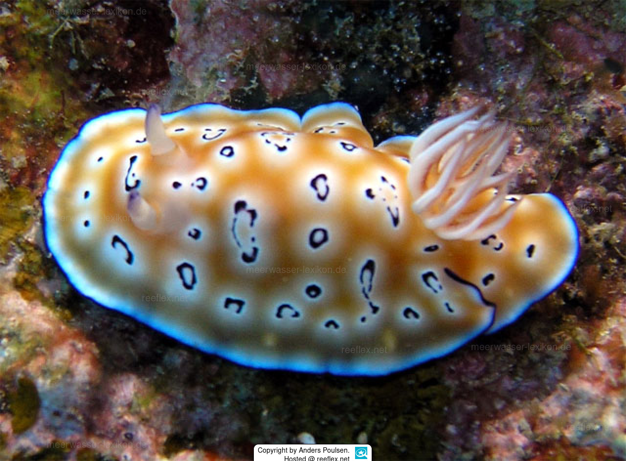 The Leopard nudibranch belongs to a group of similarly colored species. Other species include Hypselodoris tryoni, Goniobranchus kuniei and Goniobranchus geminus. They all have large purple or purple-brown spots or markings, usually edged in white, an often reticulated brownish background and a purple border.